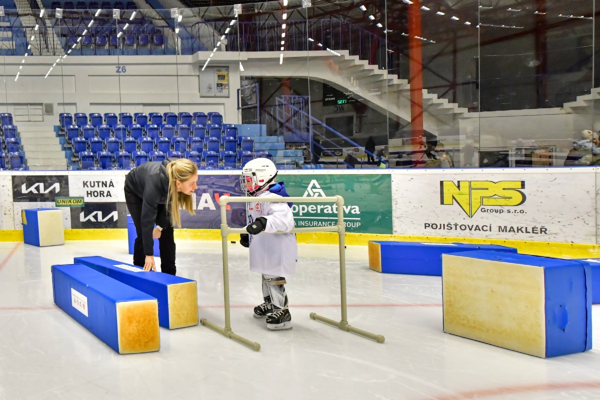Pak už nic nebránilo tomu, aby se malí sportovci poprvé vydali na led. Brusle se rozjely, oči se rozzářily a ledová plocha se během chvíle proměnila v místo plné radosti, objevování a prvních hokejových zážitků. O dobrou náladu se postaral i klubový maskot Ruda, který děti povzbuzoval, bavil a dodával odvahu tam, kde byla potřeba.